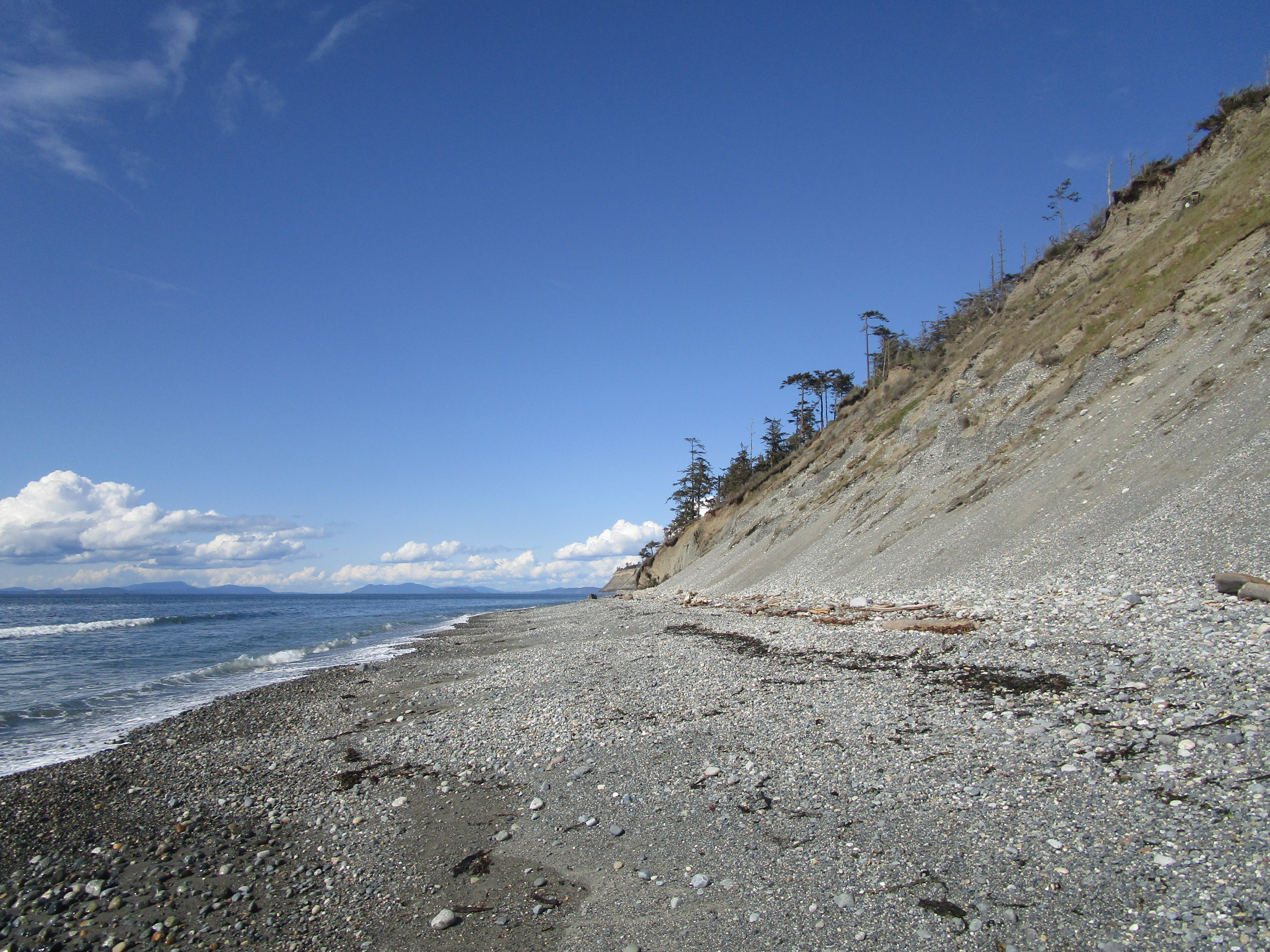 Я планировал отправиться на побережье Тихого океана в Олимпийский национальный парк, но там всё время обещали дожди, поэтому мы поехали поближе к дому (2 часа на машине), на остров Уидби, в Fort Ebey State Park.