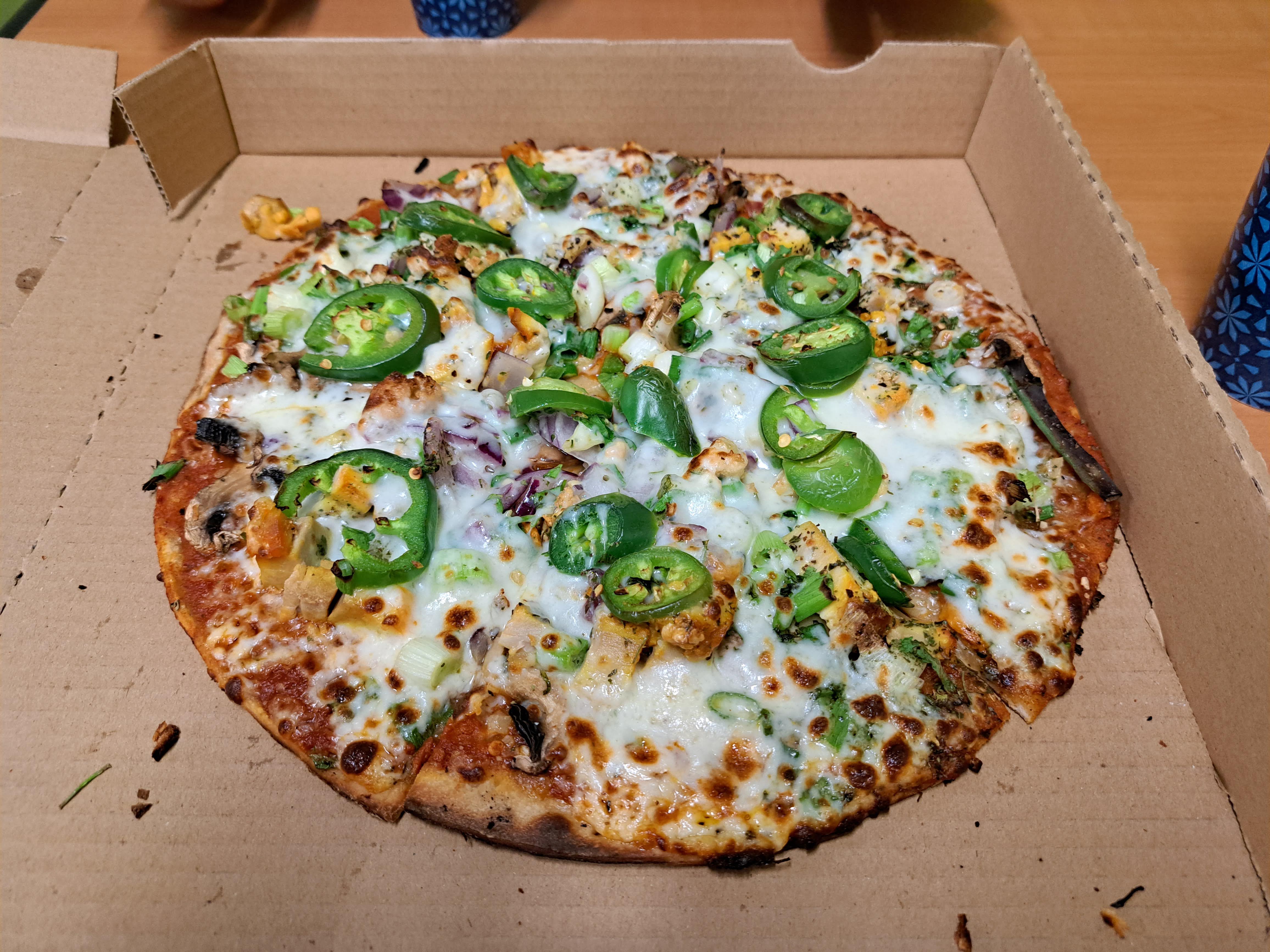 На обед остановились в ресторанчике индийской еды Curry Pizza в Bicknell, UT, где уже ели в июле. Тогда мы заказали традиционную индийскую еду, а на этот раз именно пиццу. В ней ничего резко индийского не оказалось. Острота была, но от перцев халапеньо. Хотя бы приготовили быстро, и пиццы диаметром 12 дюймов (30 см) нам хватило на двоих, так как дома нам предстояло доедать ещё своё собственное карри из холодильника: